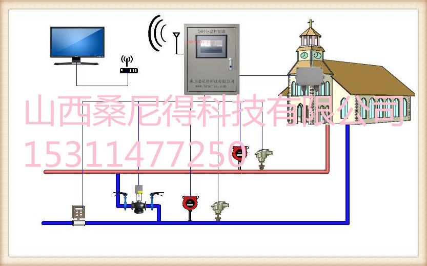 桑尼得楼宇分时分温热计量控制器根据用户不同时间段对室内温度(或者回水温度)的不同要求,通过对电动调节阀门进行调节,进而改变用户的循环水流量,达到精确调节用户室内温度(或者回水温度),即按需供热的目的。