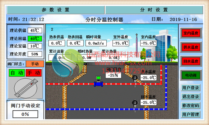 当室内温度低于该时间段设定室内温度时,阀门开度自动增大;当室内温度高于该时间段设定室内温度时,阀门开度自动减小。在节能的同时,计量本栋楼宇的热消耗量,并进行用热分析。